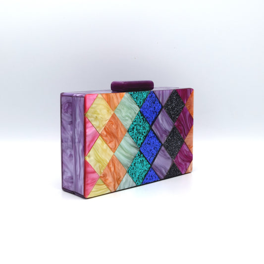 Chic and durable, our acrylic clutches offer a splash of color and sophistication to any outfit. Perfect for adding a touch of modern elegance.