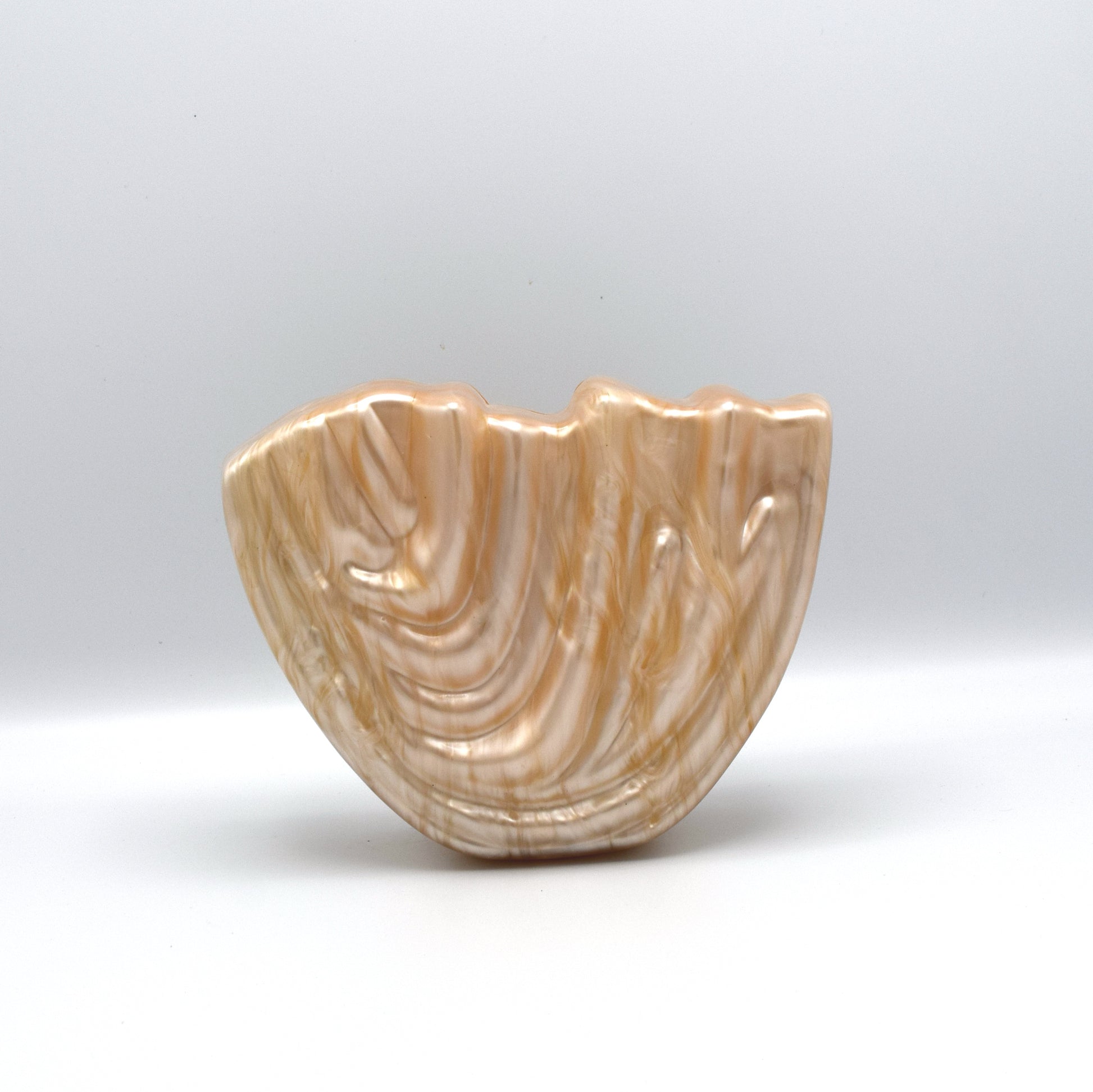 The Drapée Clutch is a sculptural ode to timeless elegance, inspired by the fluid movement of draped fabric frozen in luminous acrylic. Crafted in ivory pearl and champagne blush, this sculpted acrylic evening bag embodies the harmony between art and fashion. Its soft folds and glossy sheen create a poetic sense of motion, making it an exquisite choice for weddings, soirées, and formal celebrations.