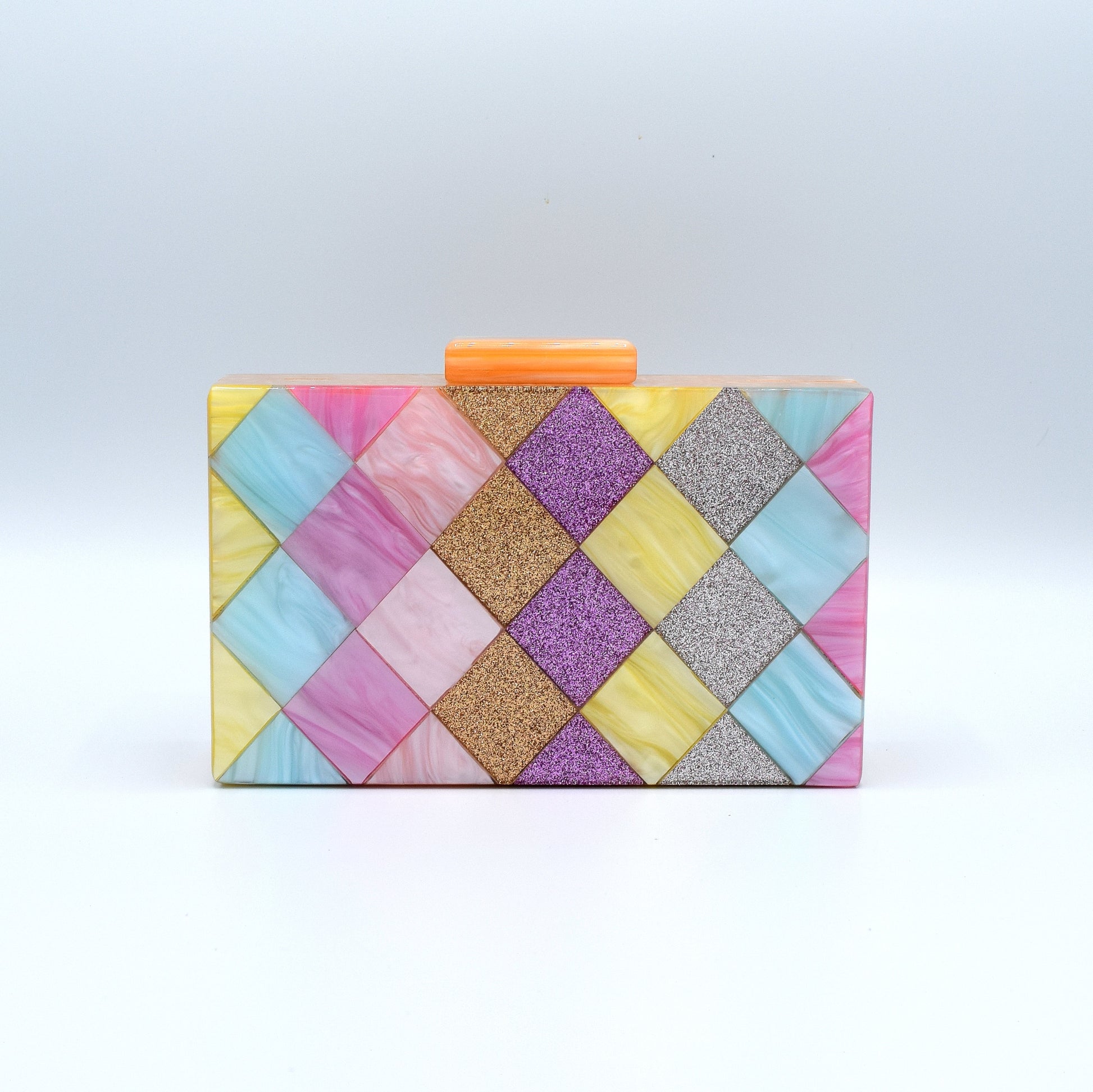 The Eden Clutch is a celebration of colors and contemporary elegance with its sleek rectangular shape and captivating multicolor design. Crafted from durable and lightweight acrylic, this acrylic clutch not only enhances your fashion statement but also offers practicality with enough space for your essentials. The multicolor palette exudes vibrancy and versatility, making the Eden Clutch perfect for adding a pop of color to any outfit, whether for daytime outings or evening events.