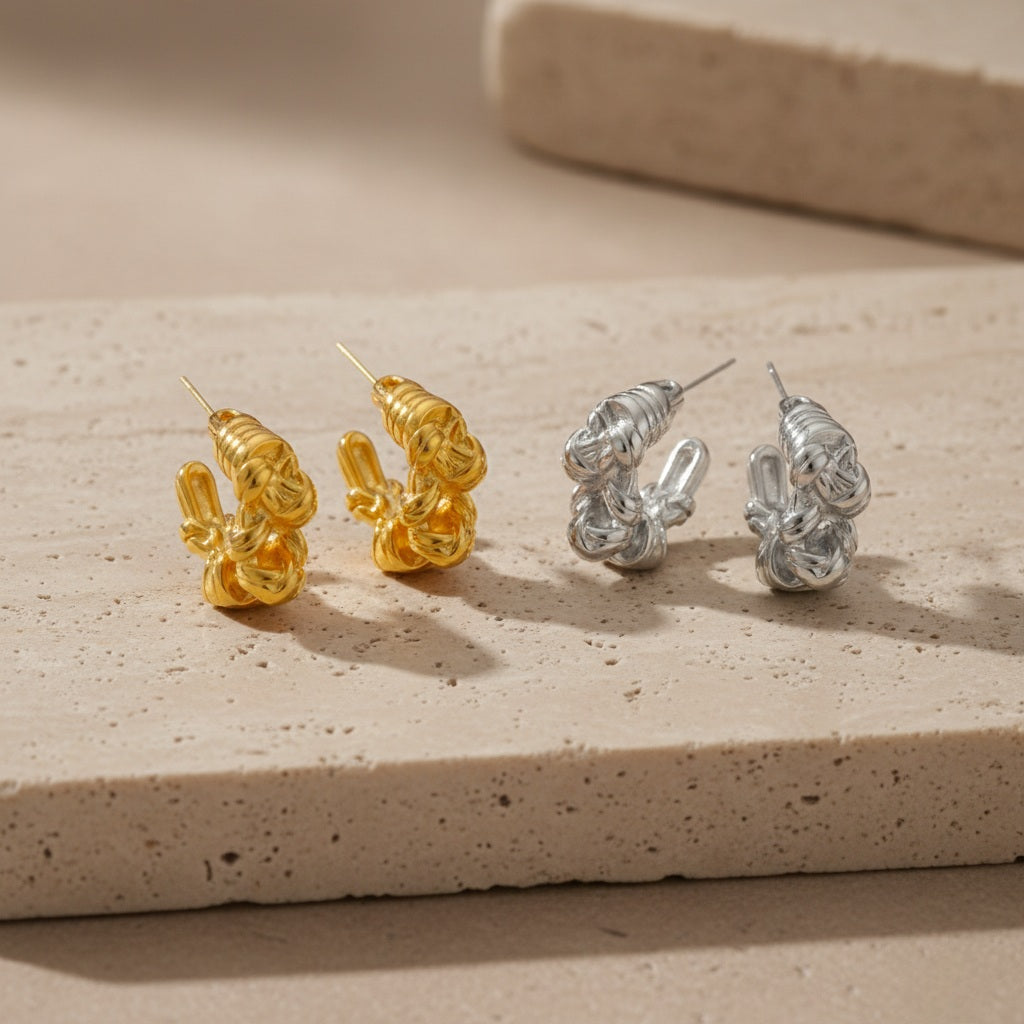 Introducing our Knotted Roped Hoops a bold and sculptural take on modern hoop design. Crafted from premium titanium steel and finished in radiant 18K gold or polished silver, these textured earrings feature an intricate knotted rope silhouette that adds instant dimension and character to any look.