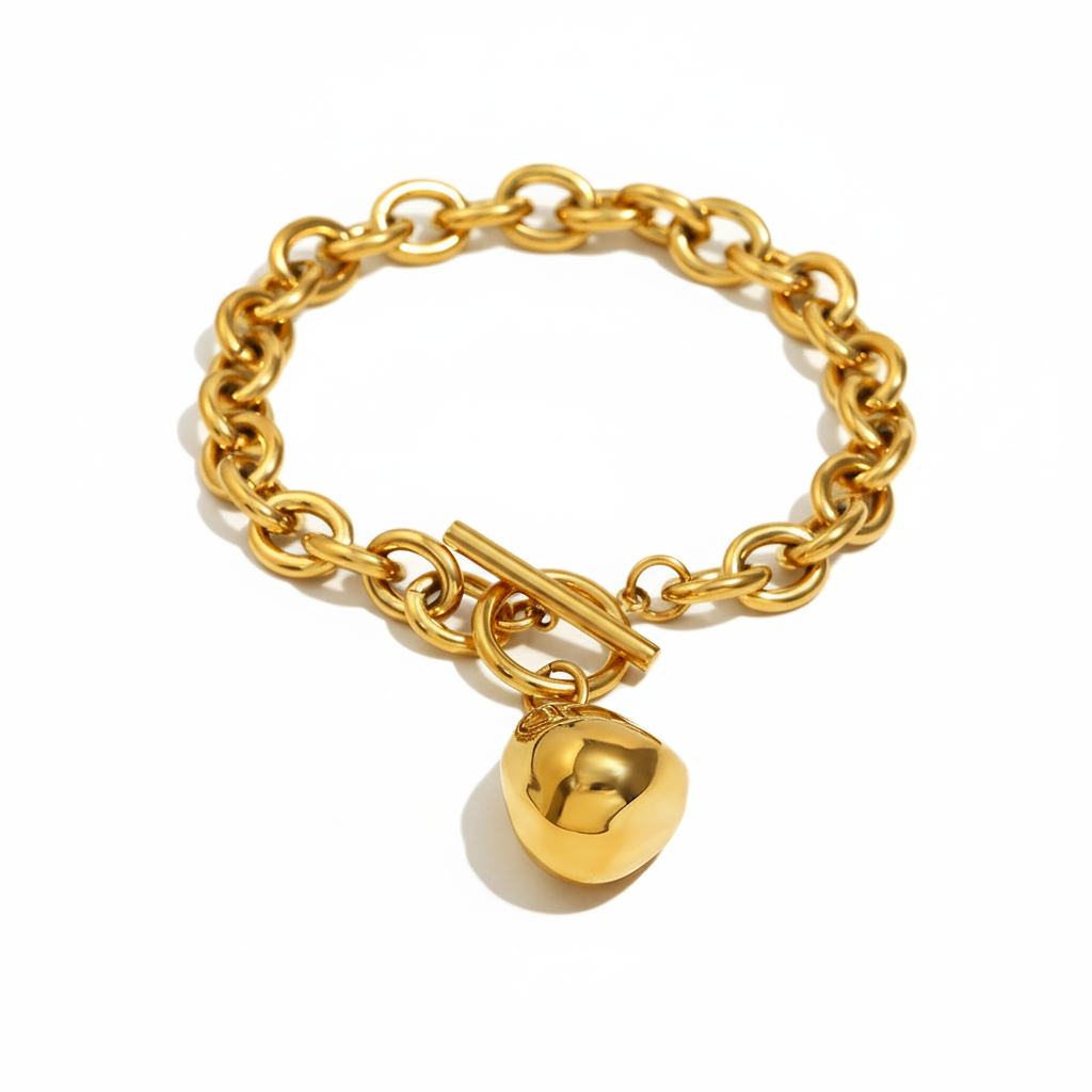 Measuring approximately 22 cm in length with link widths of 0.8 cm, the bracelet offers a comfortable and luxurious fit. The pendant measures 4.08 cm by 1.57 cm, creating a striking focal point while maintaining an elegant balance. Weighing 19.7 g, it feels substantial without being heavy.
