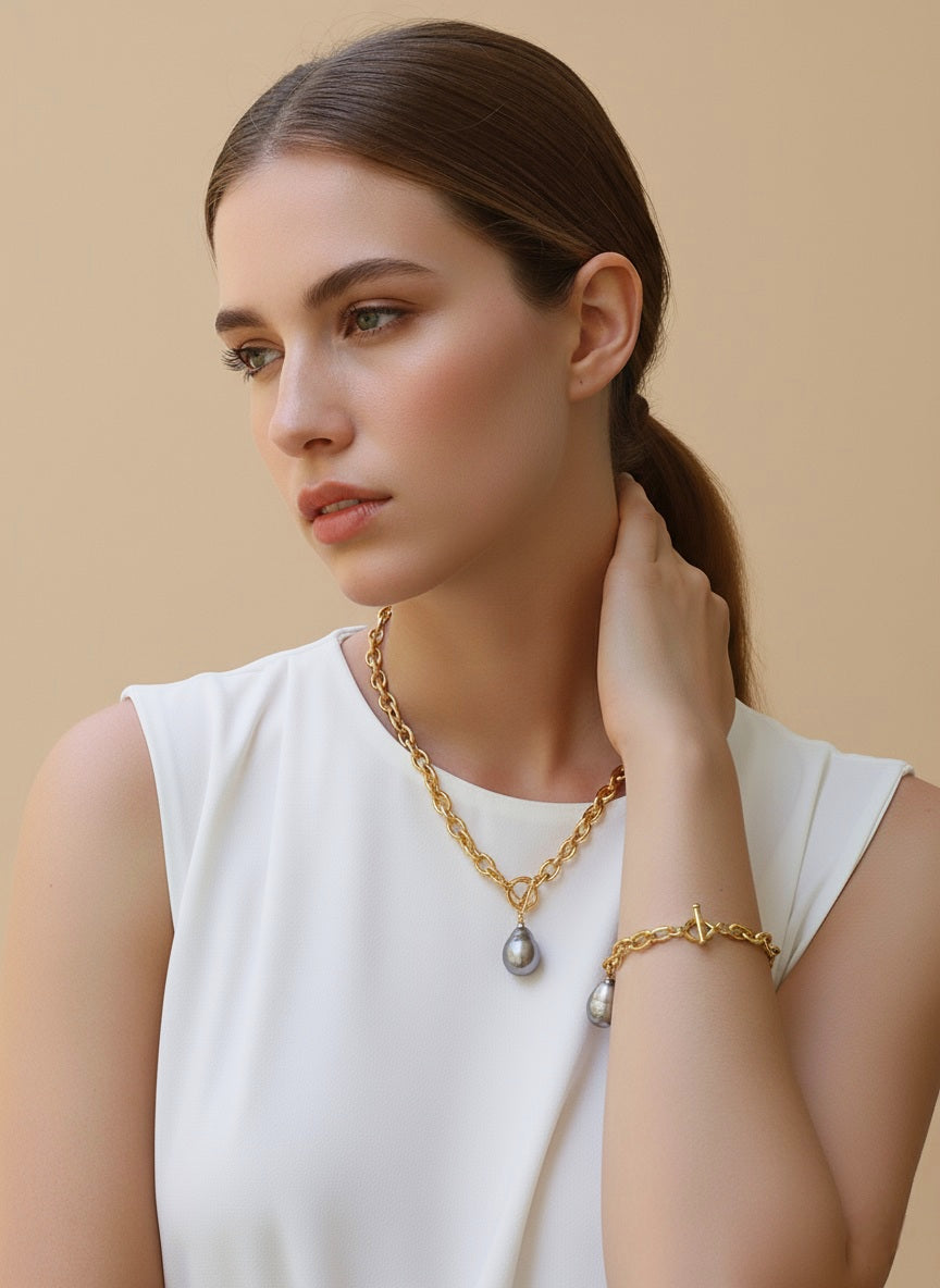 Both pieces are finished with a polished toggle clasp that adds a touch of sophistication while ensuring effortless wear.
