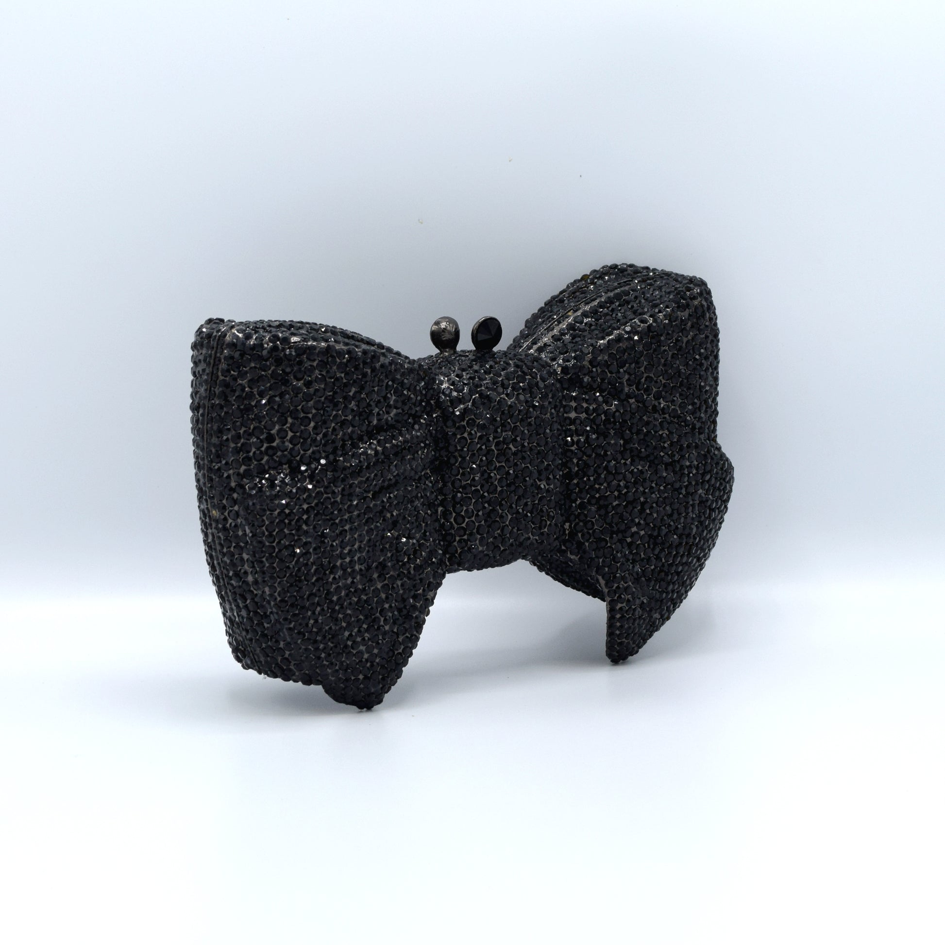 The Pretty Please Clutch is a playful take on iconic glamour where sparkle meets sculptural charm. Shaped as an oversized bow and fully encrusted with light catching rhinestones this piece turns a classic feminine motif into a bold statement accessory. From every angle it reflects brilliance movement and attitude making it impossible to ignore.