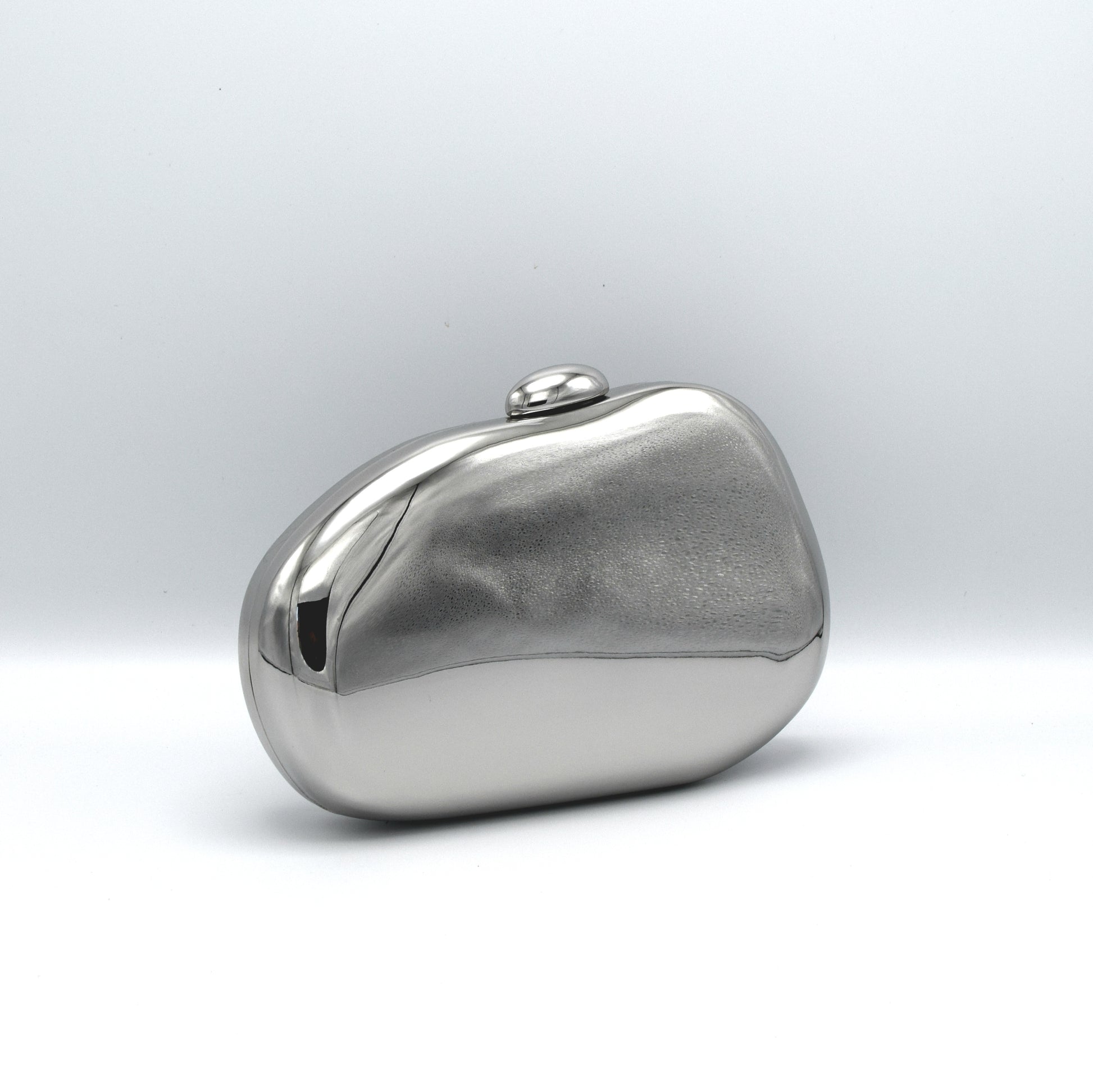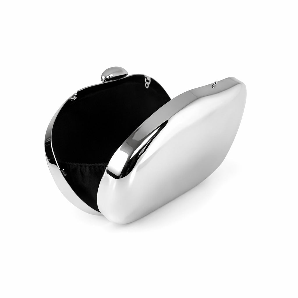 An icon of modern luxury and sculptural design. The Reflection Clutch is crafted entirely from polished metal, giving it a mirror-like surface that captures and reflects light with captivating brilliance. Its smooth, rounded silhouette makes it feel more like wearable art than an accessory; bold, futuristic, and unapologetically chic.