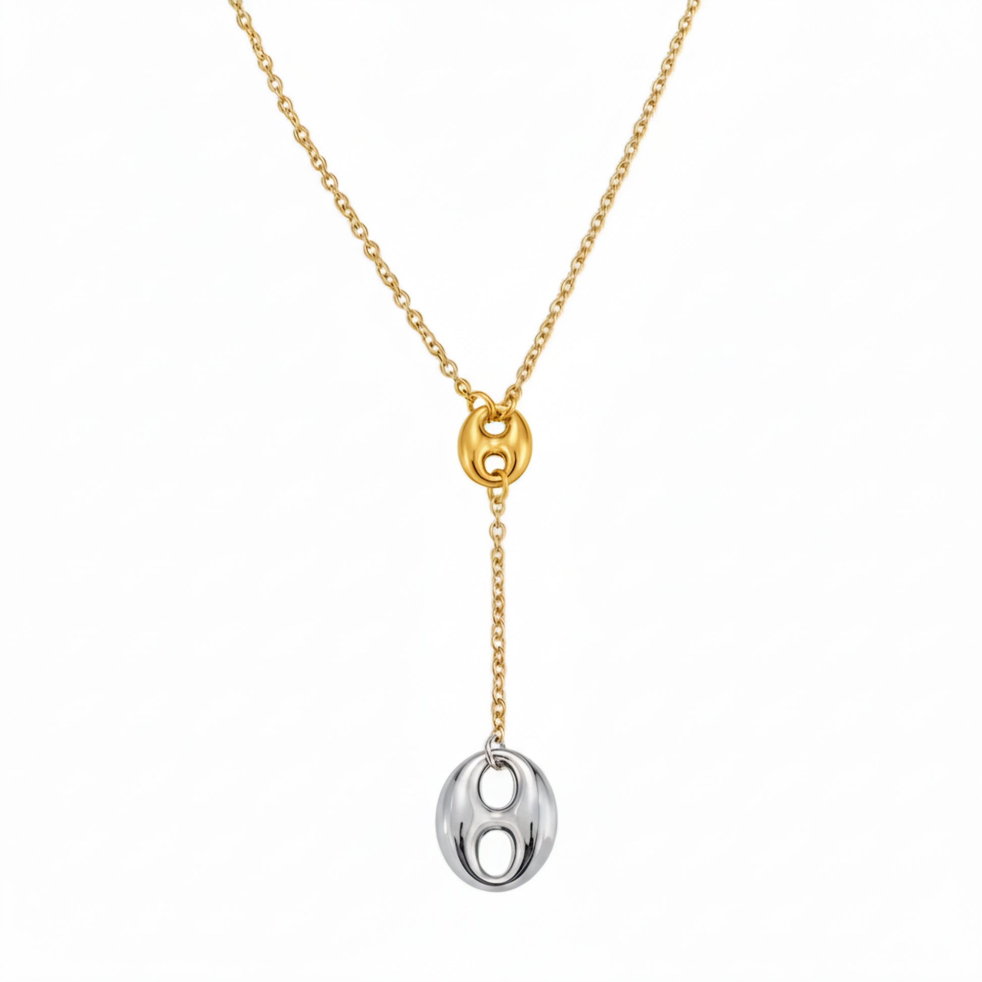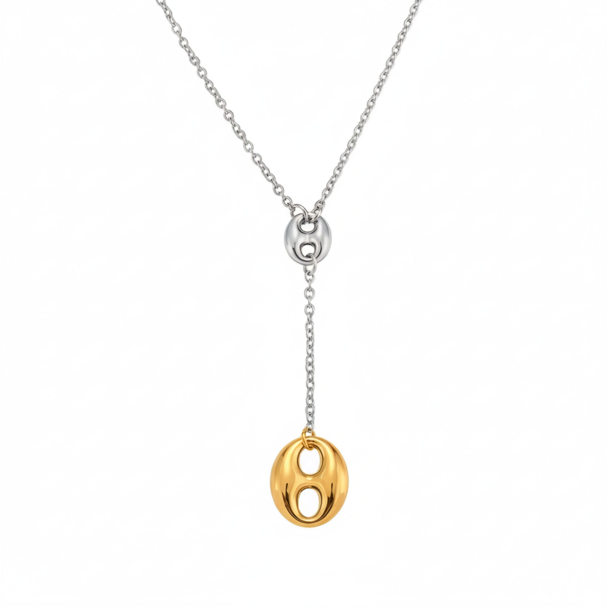 Introducing the Velocity Drop Necklace a sleek and modern statement piece crafted for women who love fluid movement and sculptural elegance. Made from premium stainless steel, this necklace features a double oval drop design with a polished, mirror like finish that beautifully reflects the light.